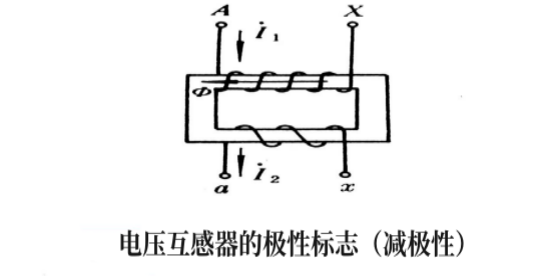 (2)假定一次电流I1从首端A流入,从尾端X流出时,二次电流是从首端a流出,从尾端 x流入,这样的极性标志称为减极性。反之为加极性。常用的电压互感器,一般均为减极性标志。