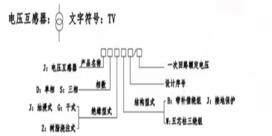 第一个字母J表示电压互感器;第二个字母表示相数;第三个字母表示绝缘形式;第四个字母表示结构形式。